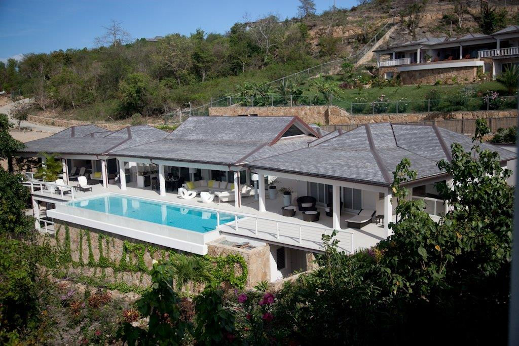 Elegant villa in Antigua on a hilltop offering stunning views of Depp Bay and the Caribbean sea.